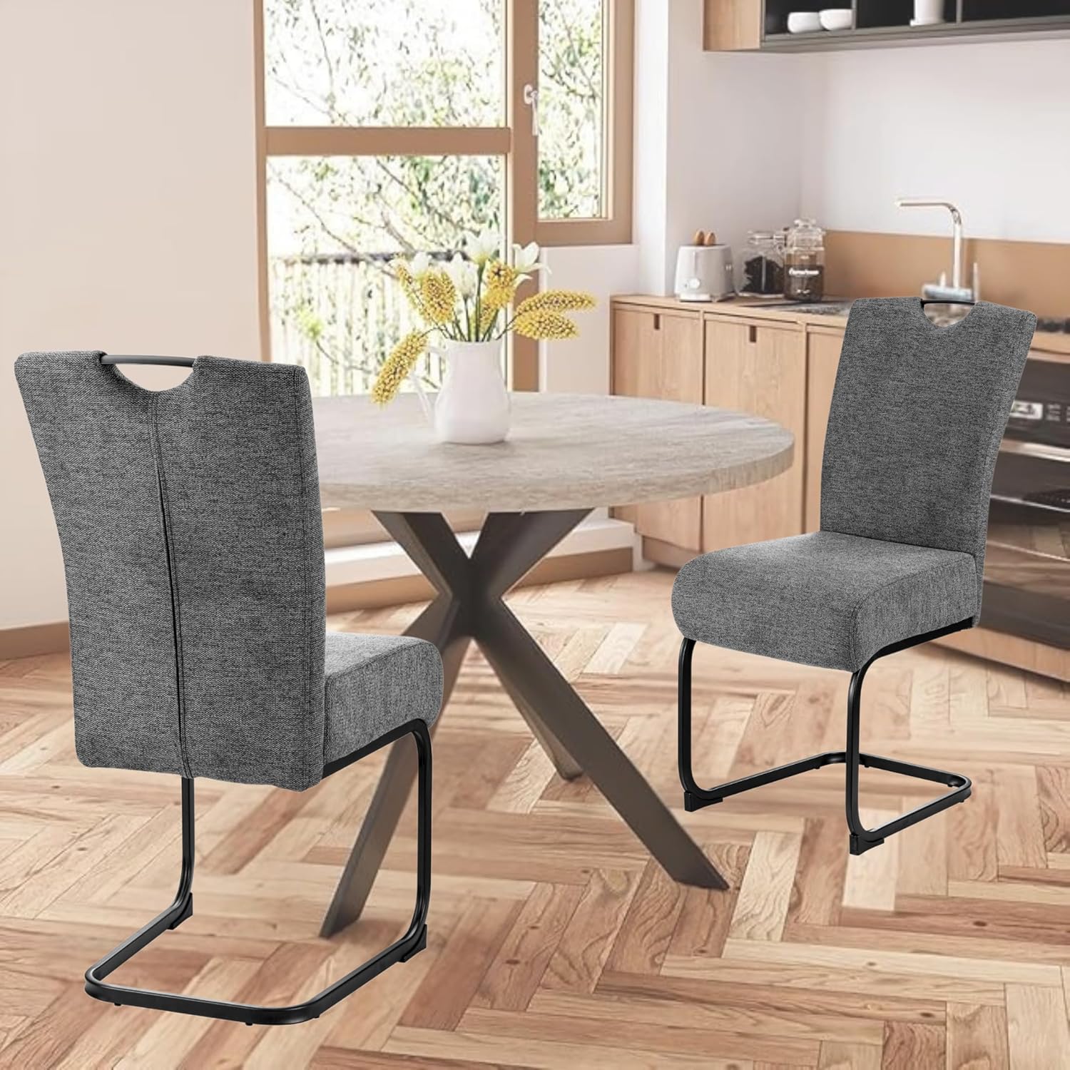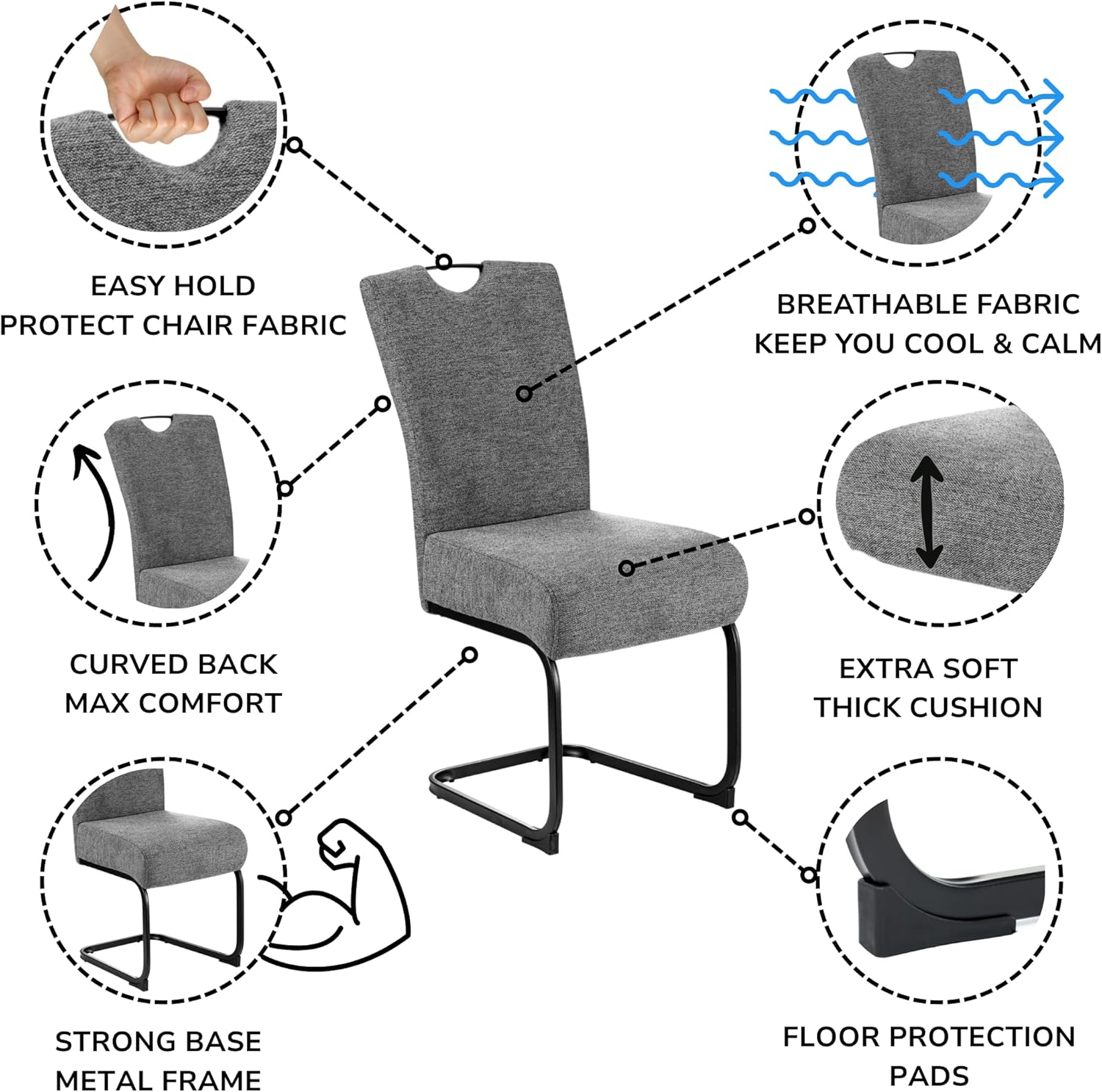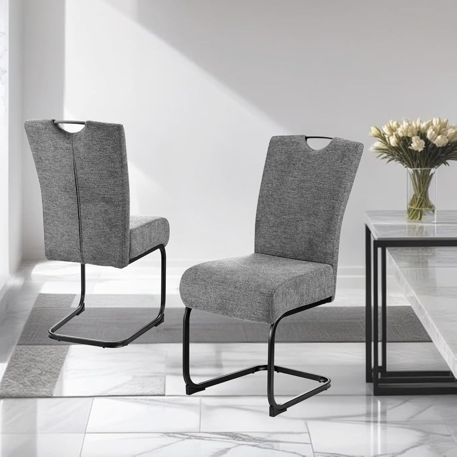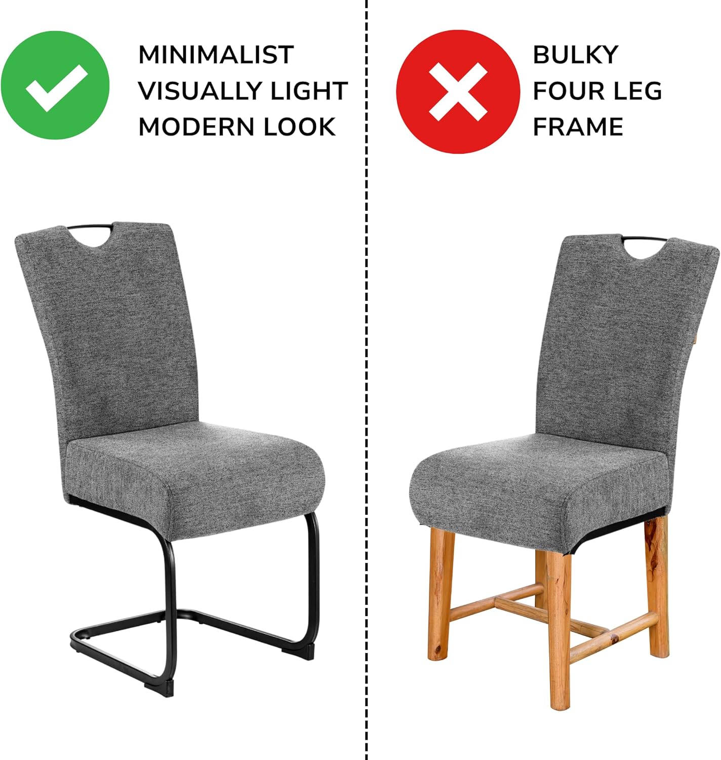 - MINIMALIST FLOATING DESIGN : The sleek U-shaped metal base gives a modern, floating appearance, making it more elegant and space-efficient than bulky four-legged chairs.